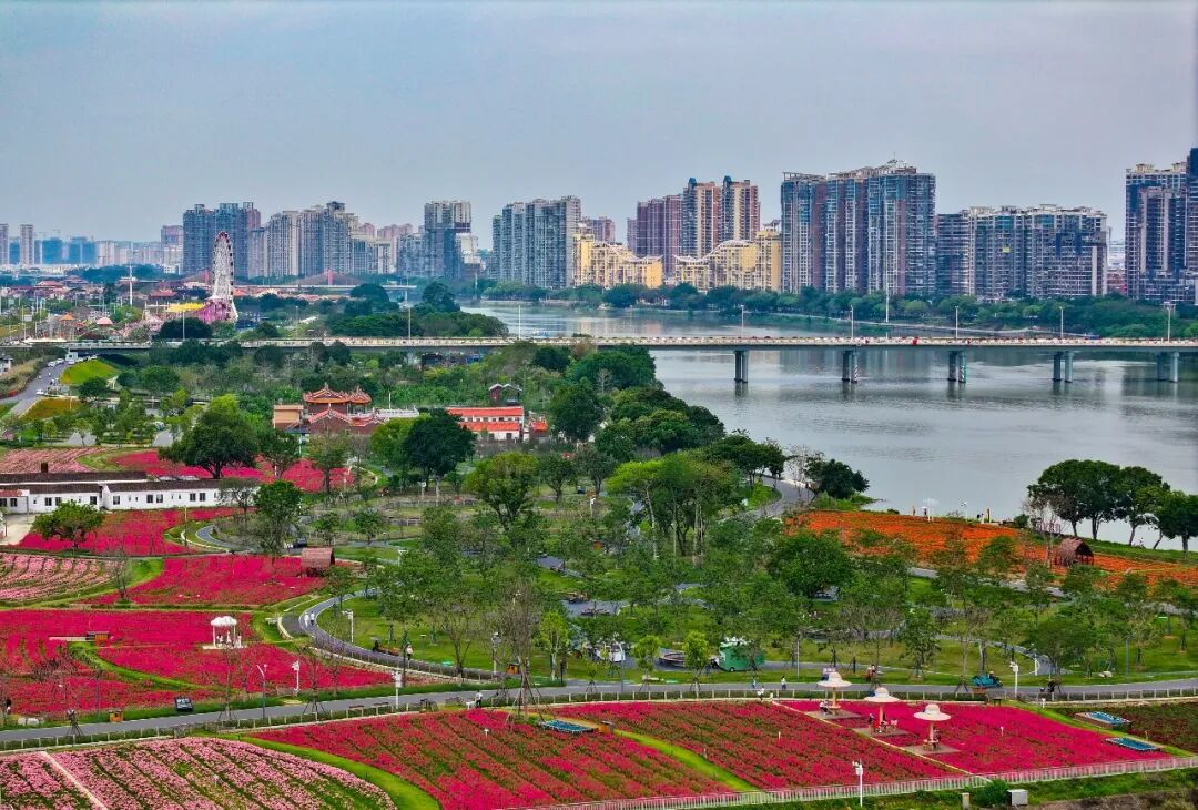 福建漳州市将生态修复与城市更新深度融合,在九龙江西溪南岸分批推进龙江岁月城市更新项目。这是4月11日拍摄的漳州龙江岁月景区及周边城市景观。新华社记者 姜克红摄